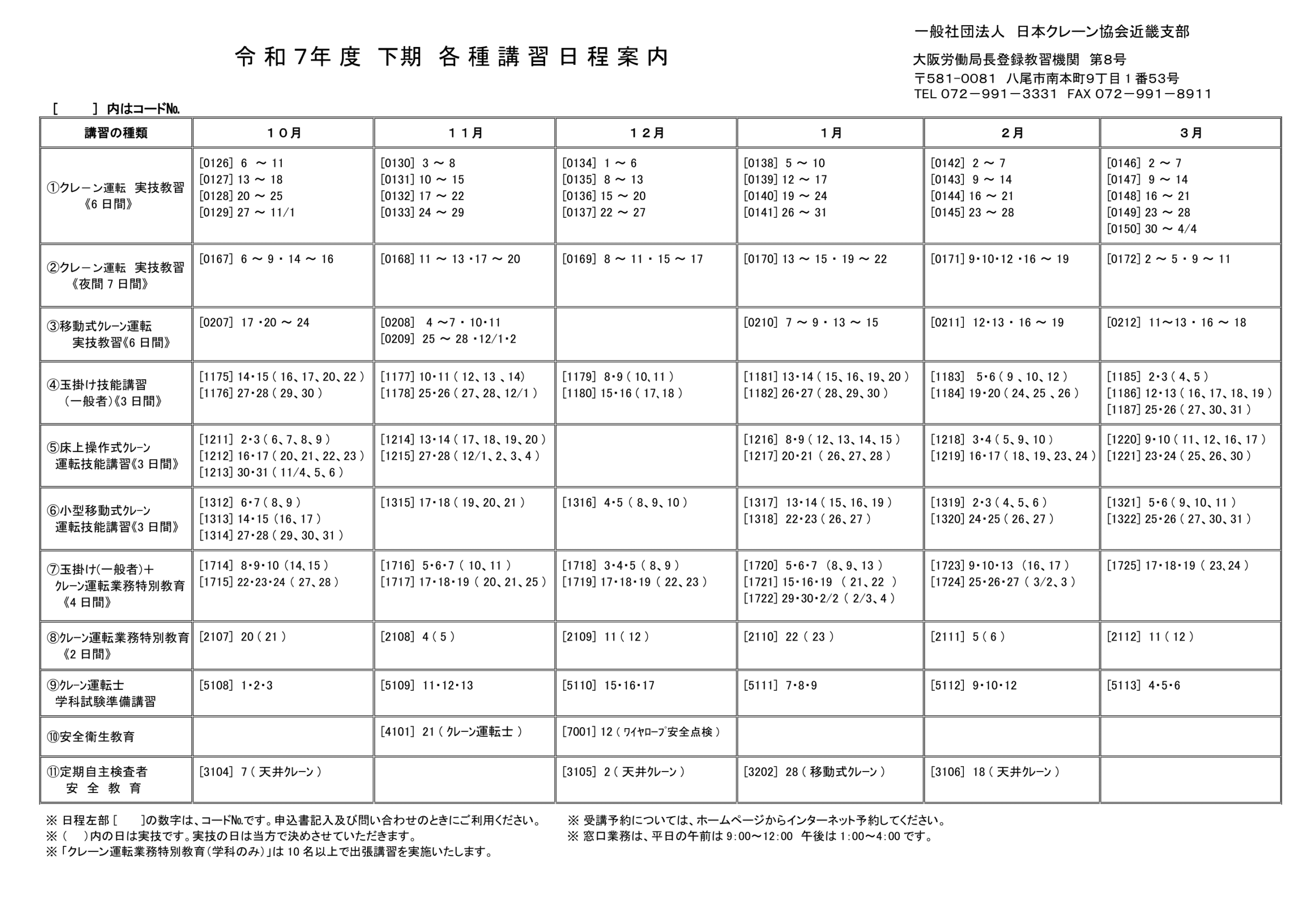 一般社団法人 日本クレーン協会近畿支部・八尾クレーン教習所